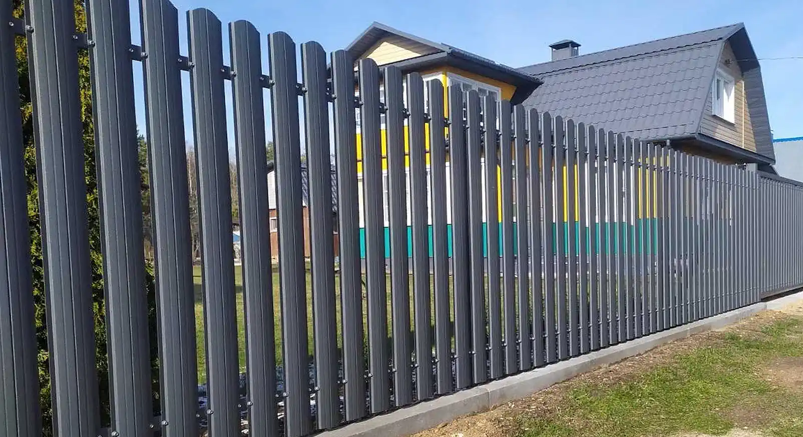 Конструкция забора из евроштакетника на ленточном фундаменте